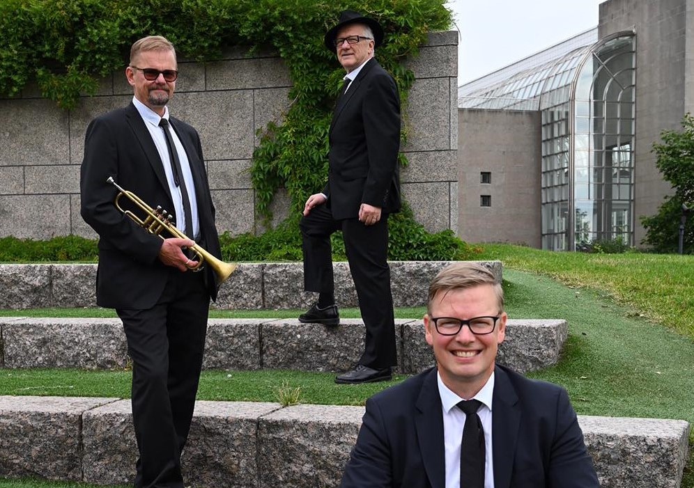 Orkesterin väliajalla viihdyttää svengaava trio Borsalino Jazz: Arto Hiltunen trp, Mika Nimelä dr, Matti Kuronen voc pno.