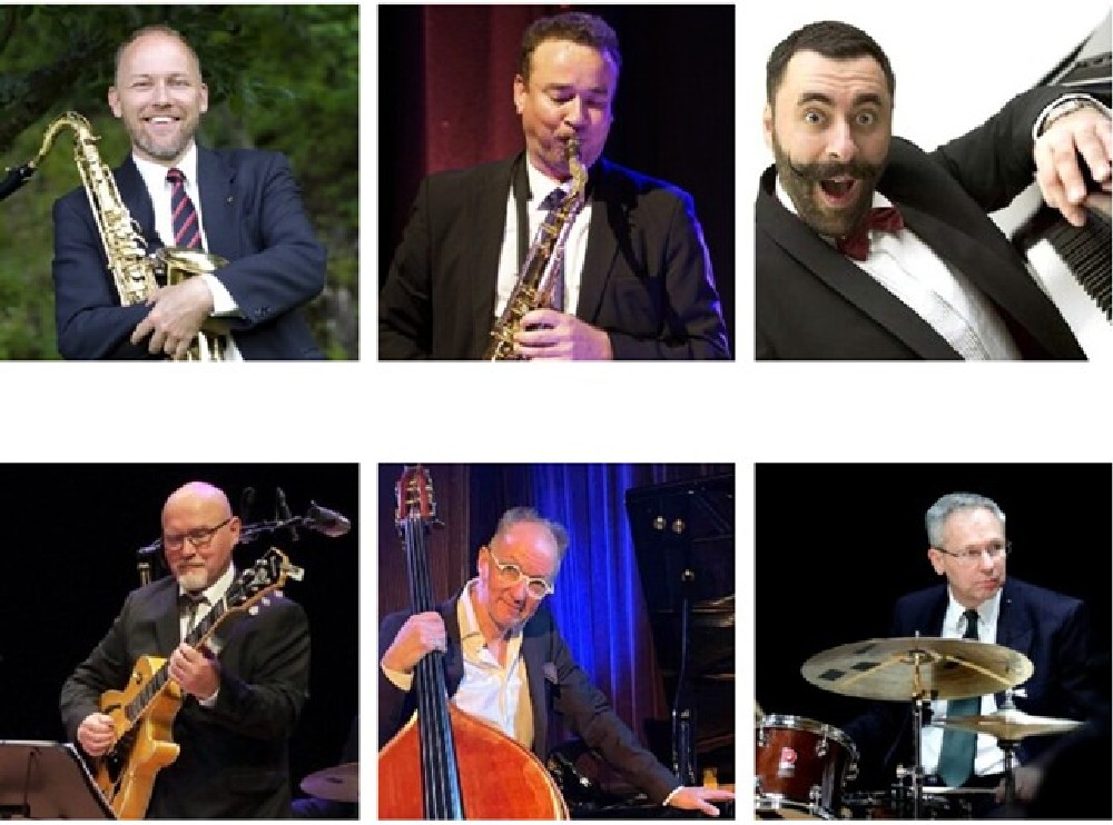 Grani Swing Sextet: Kimmo Leppälä – clarinet & tenorsax, Risto Salmi – clarinet & tenorsax, Zhenia Gimer – piano & clarinet, Fred Ahlberg – guitar, Hannu Rantanen – bass ja Rabbe Hjelt, drums sekä Dizzy Queen: Lidia Bäck, Nora Grotenfelt ja Daniela Fogelholm – vocal (art.kuva).
